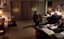 While trying to the find the Jennings, Larrick discovers the Clandestine call center and shoots its operator, George. | |||