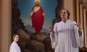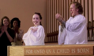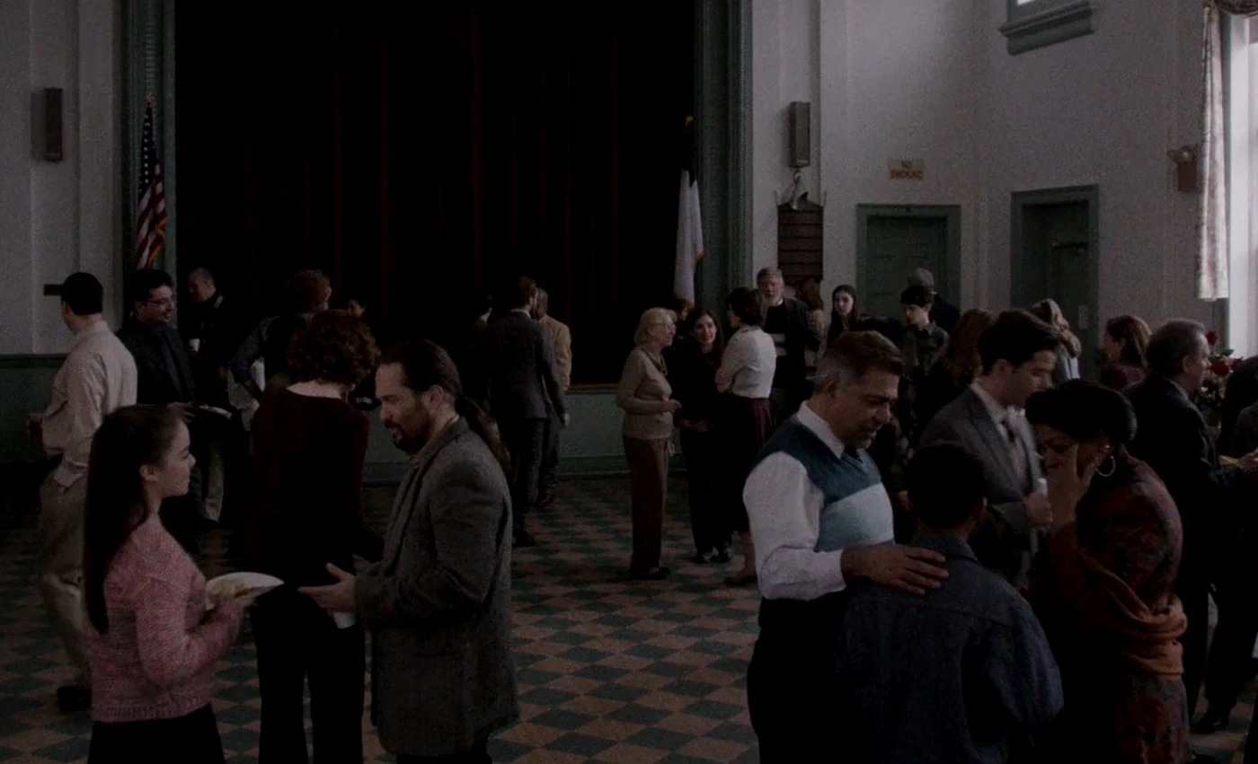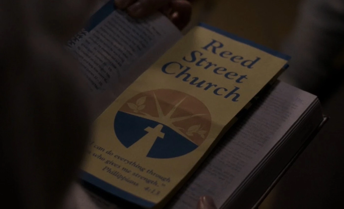 | Rooms seen in the church include the sanctuary, Pastor Tim's office, the congregation hall, reception area and the basement, where the youth group holds its meetings. The congregation hall is used for informal meetings and event preparation, such as preparing pamphlets for events. The church participates in anti-nuclear protests ("Echo") and runs a food pantry in a poor area of downtown Washington. ("A Roy Rogers in Franconia") |